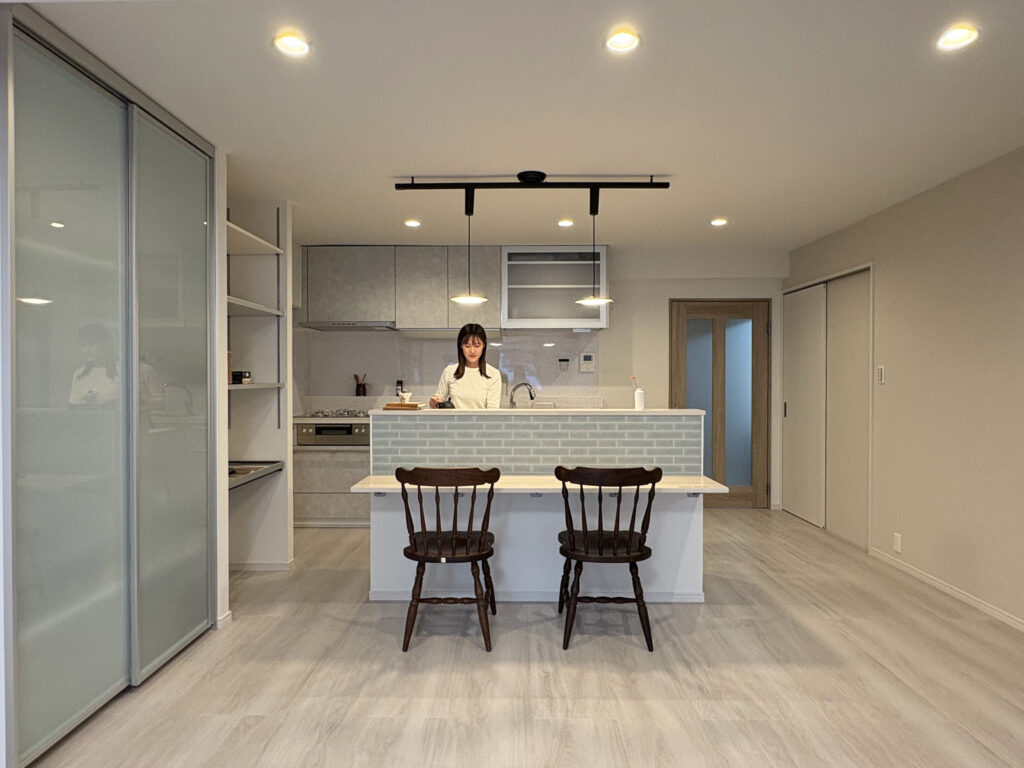 床材や照明、収納計画を含めて整えることで、キッチン単体ではなく、LDK全体に統一感を落ち着きが生まれます。明るさや素材の質感を工夫することで、日常の景色が柔らかく整い、居心地の良い空間へと変わります。