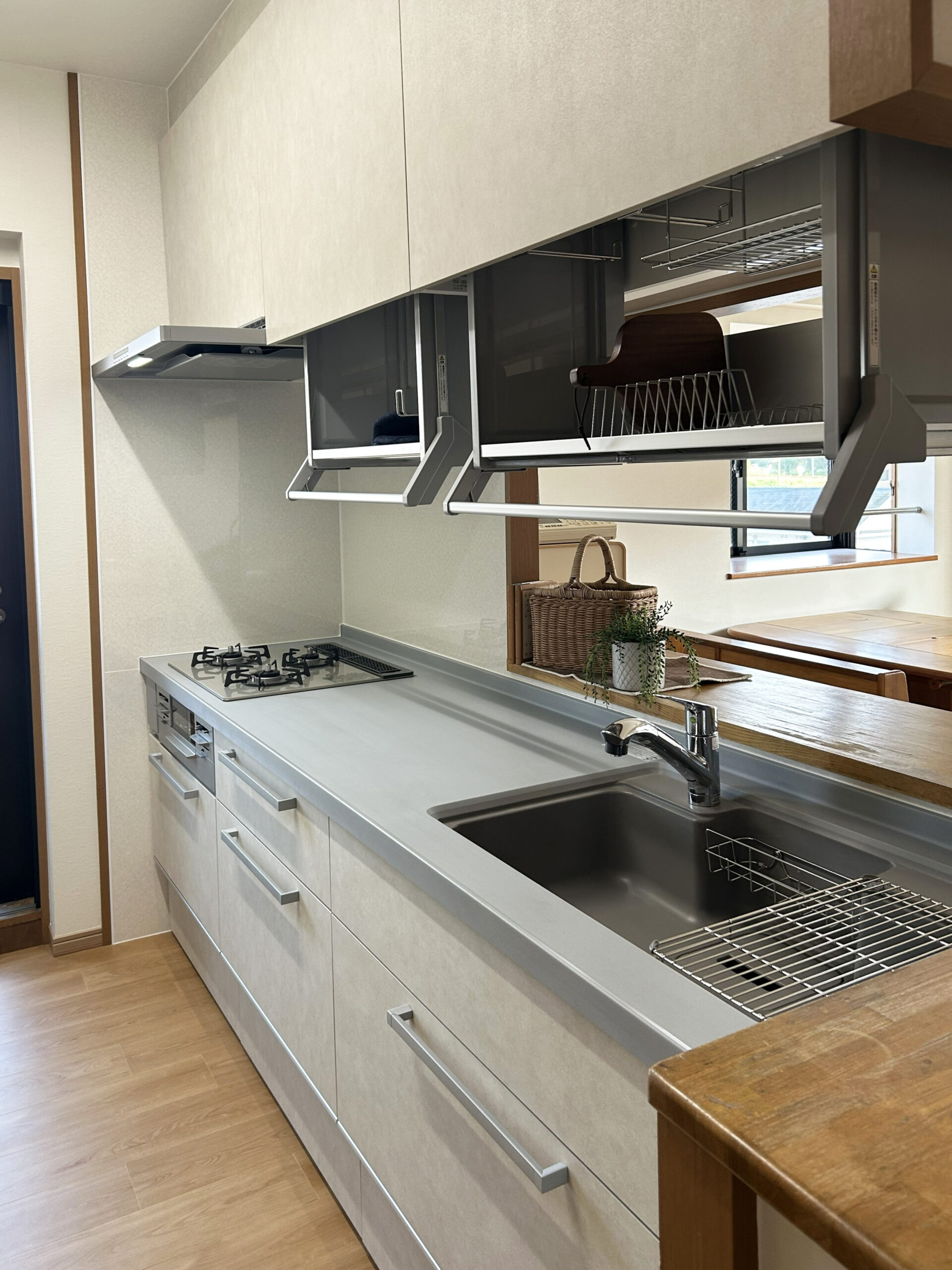 吊戸棚には昇降式を採用しました。