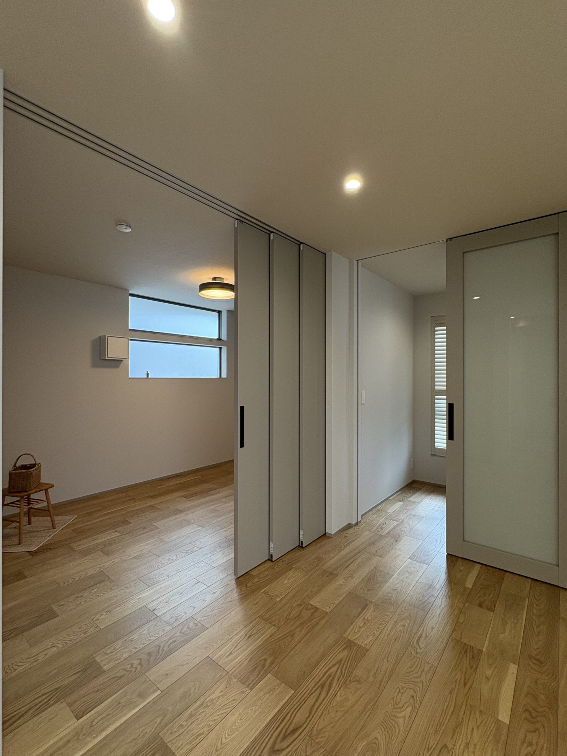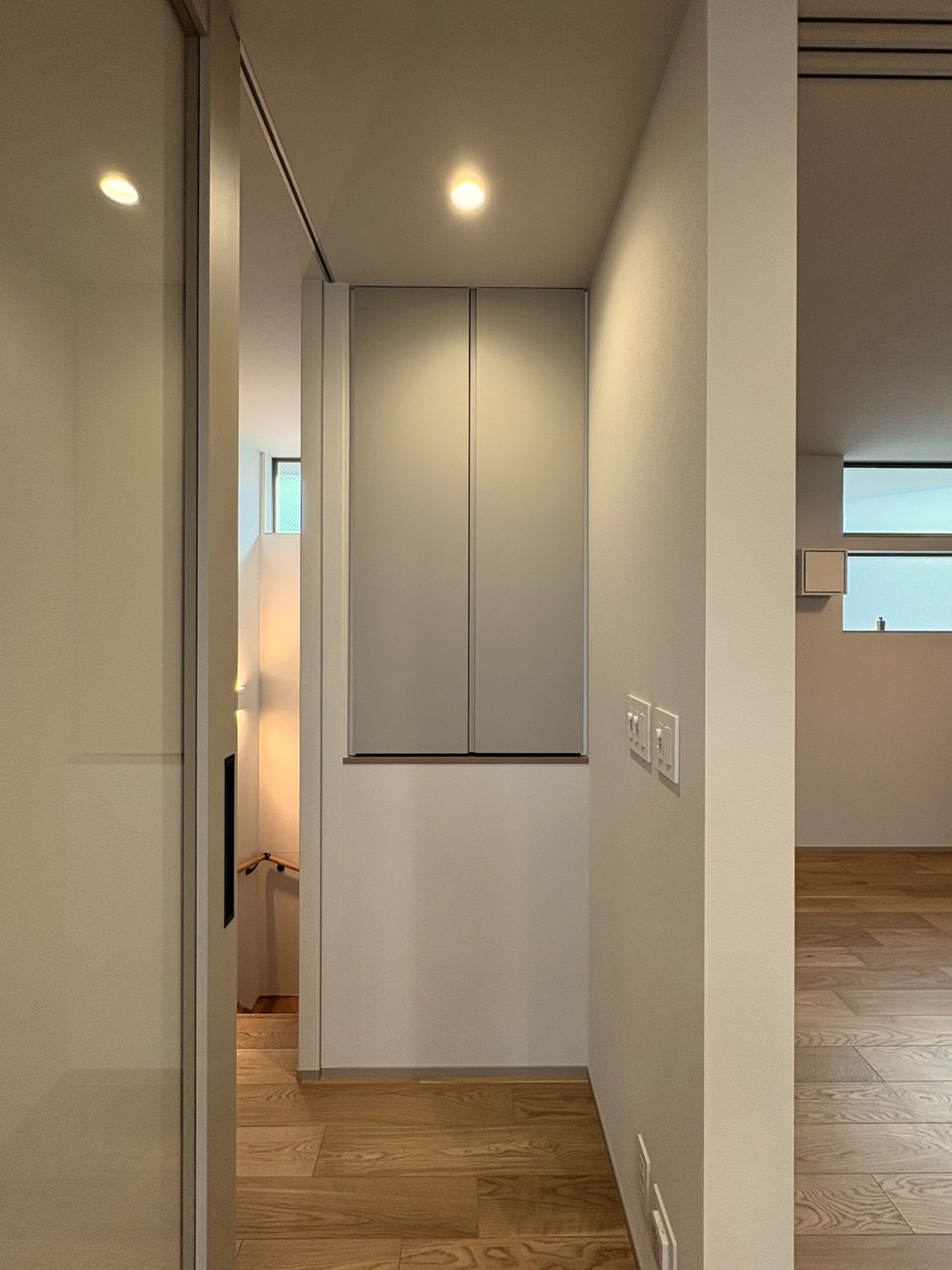 天井までまっすぐに伸びるシルエットが美しいハイドアを採用しました。空間に洗練された印象と上質な雰囲気を演出し、ナチュラルな空間がよりホテルライクに。