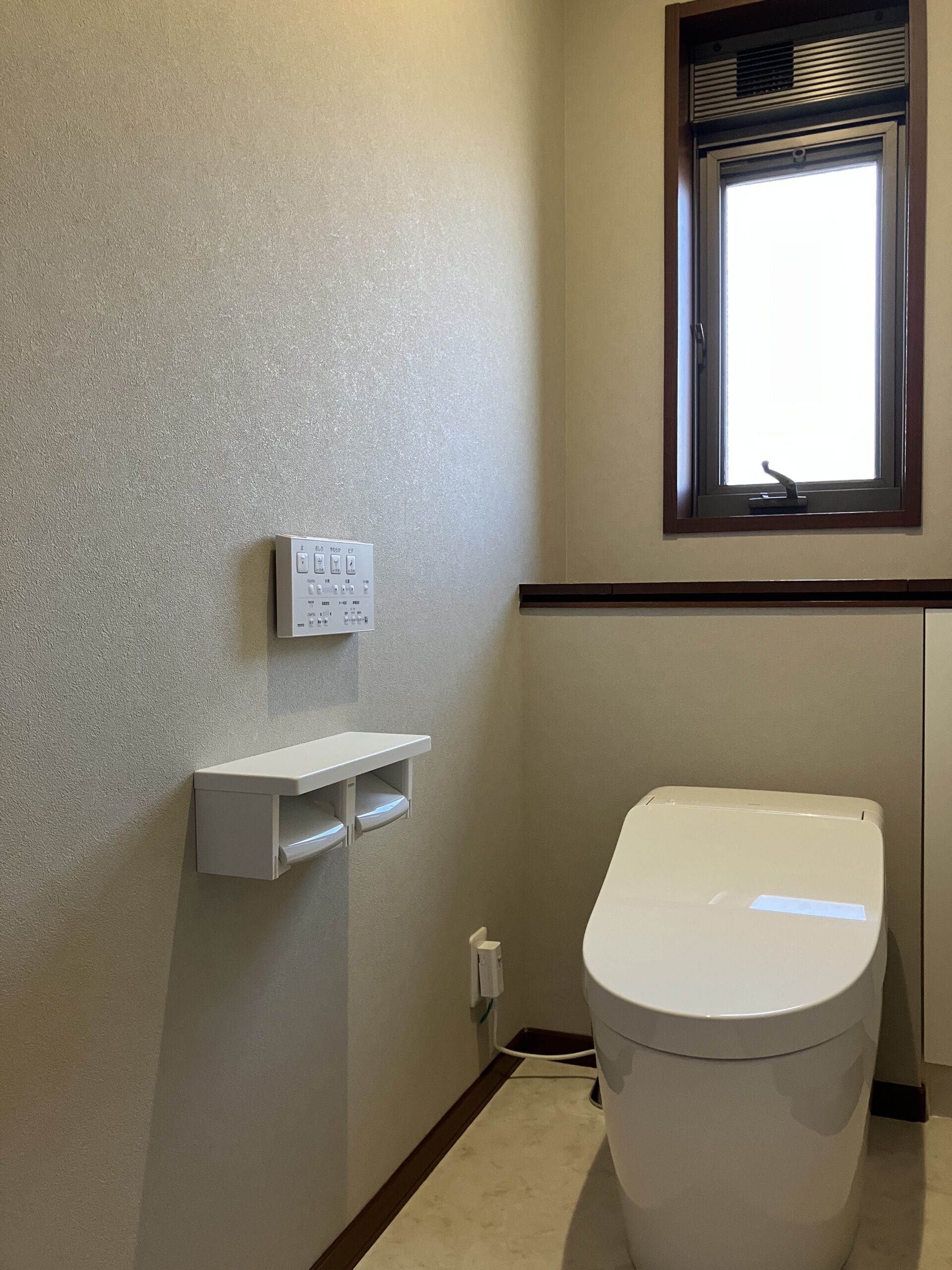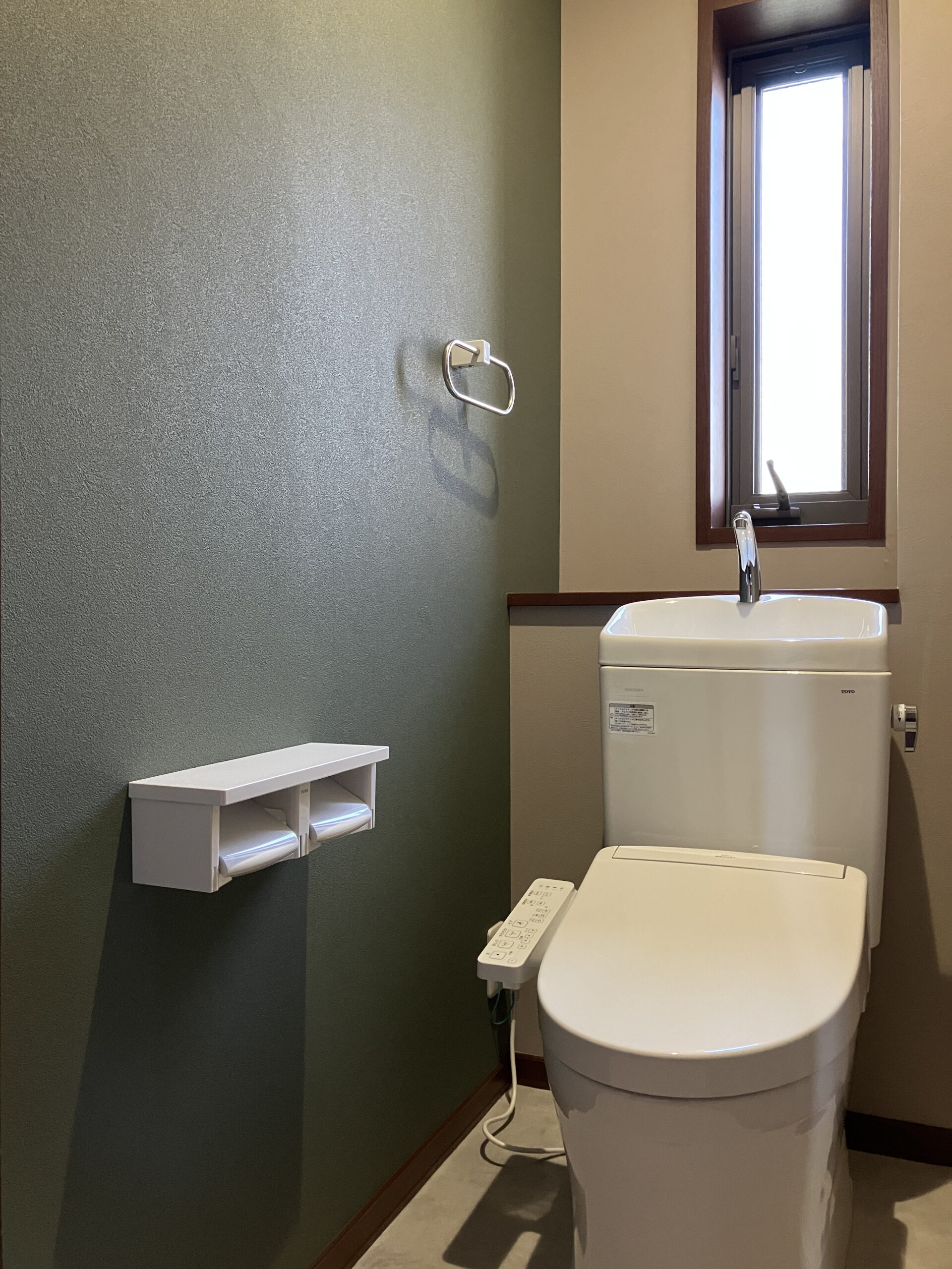 使いやすさを大切にしながら、トイレにはアクセントクロスでさりげないこだわりを。機能性と心地よさを両立した住まいに仕上がりました。